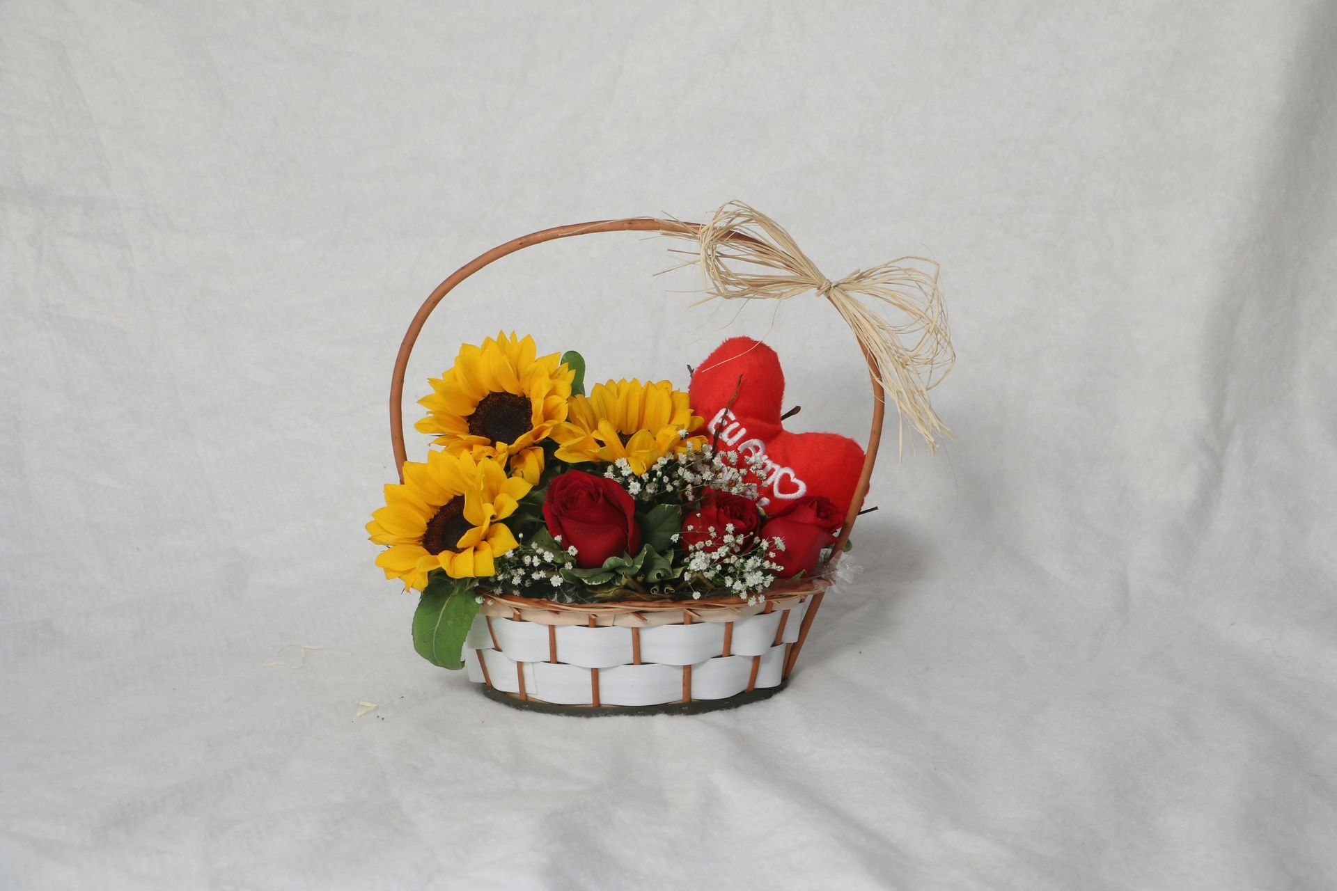 Cestas de flores originales y completas, perfectas para regalar y sorprender con un detalle diferente.