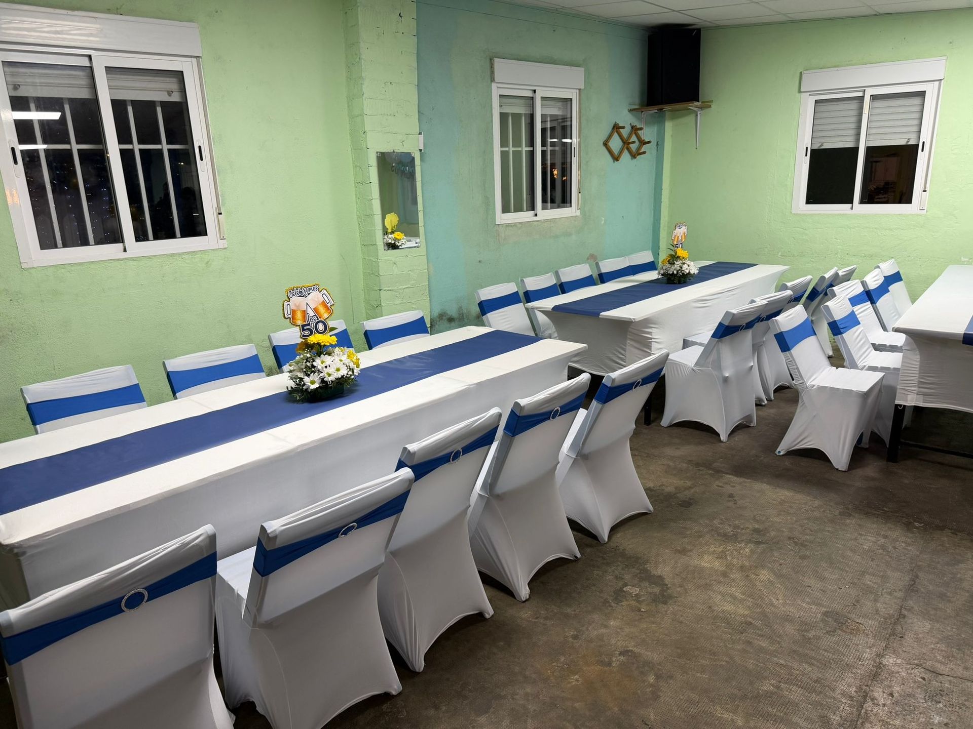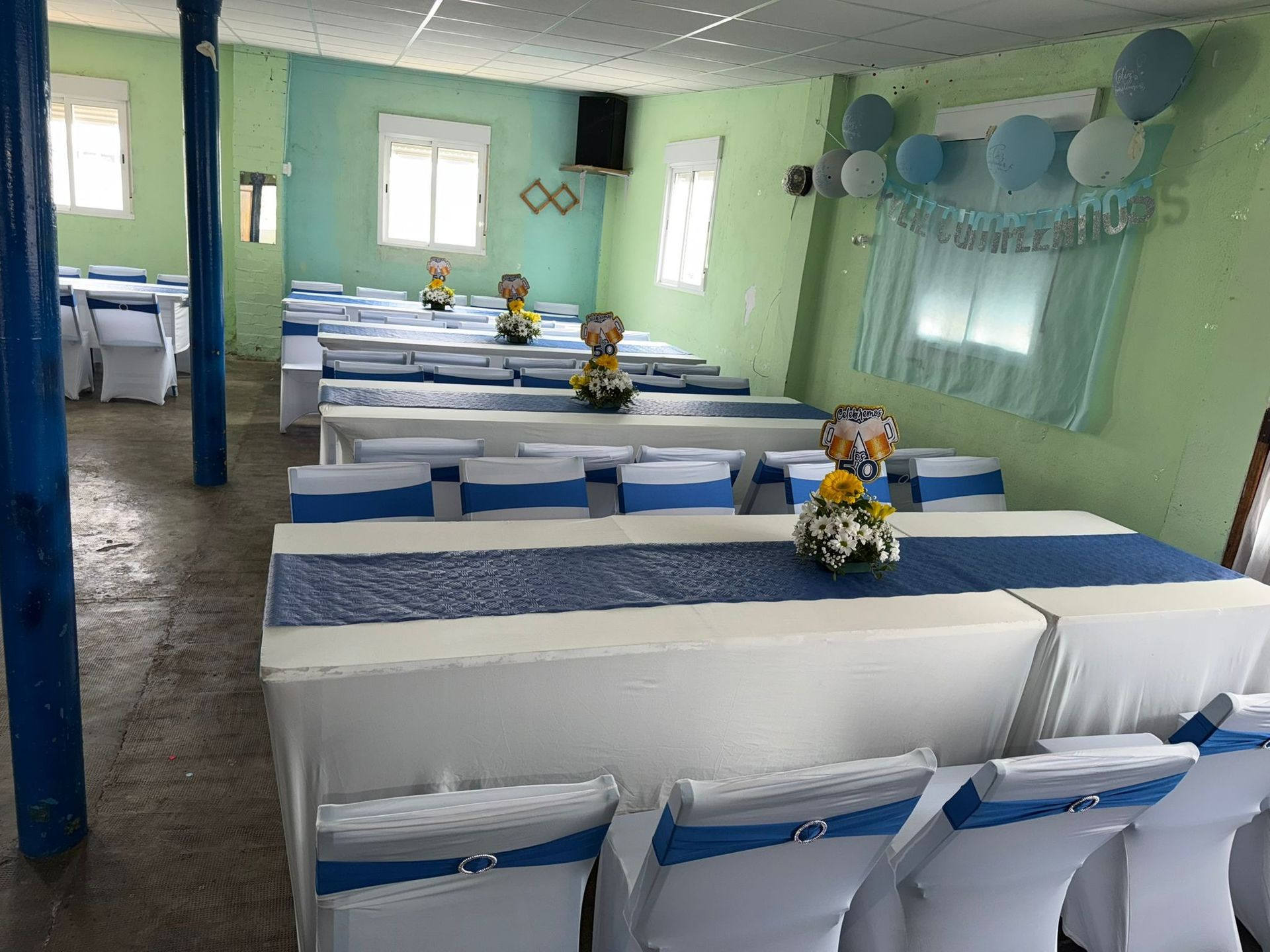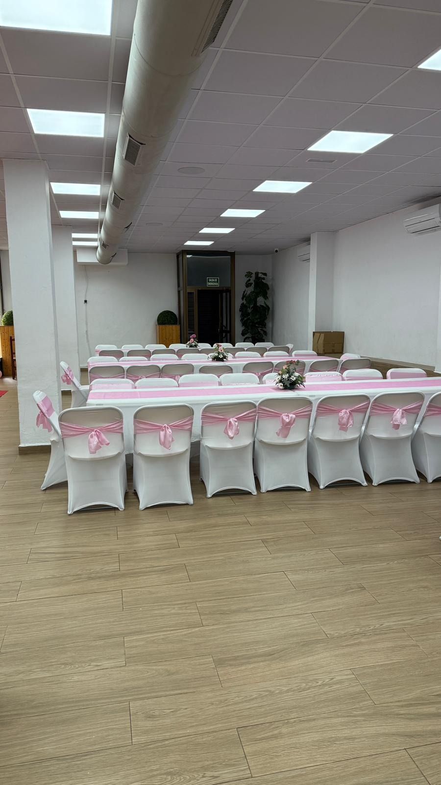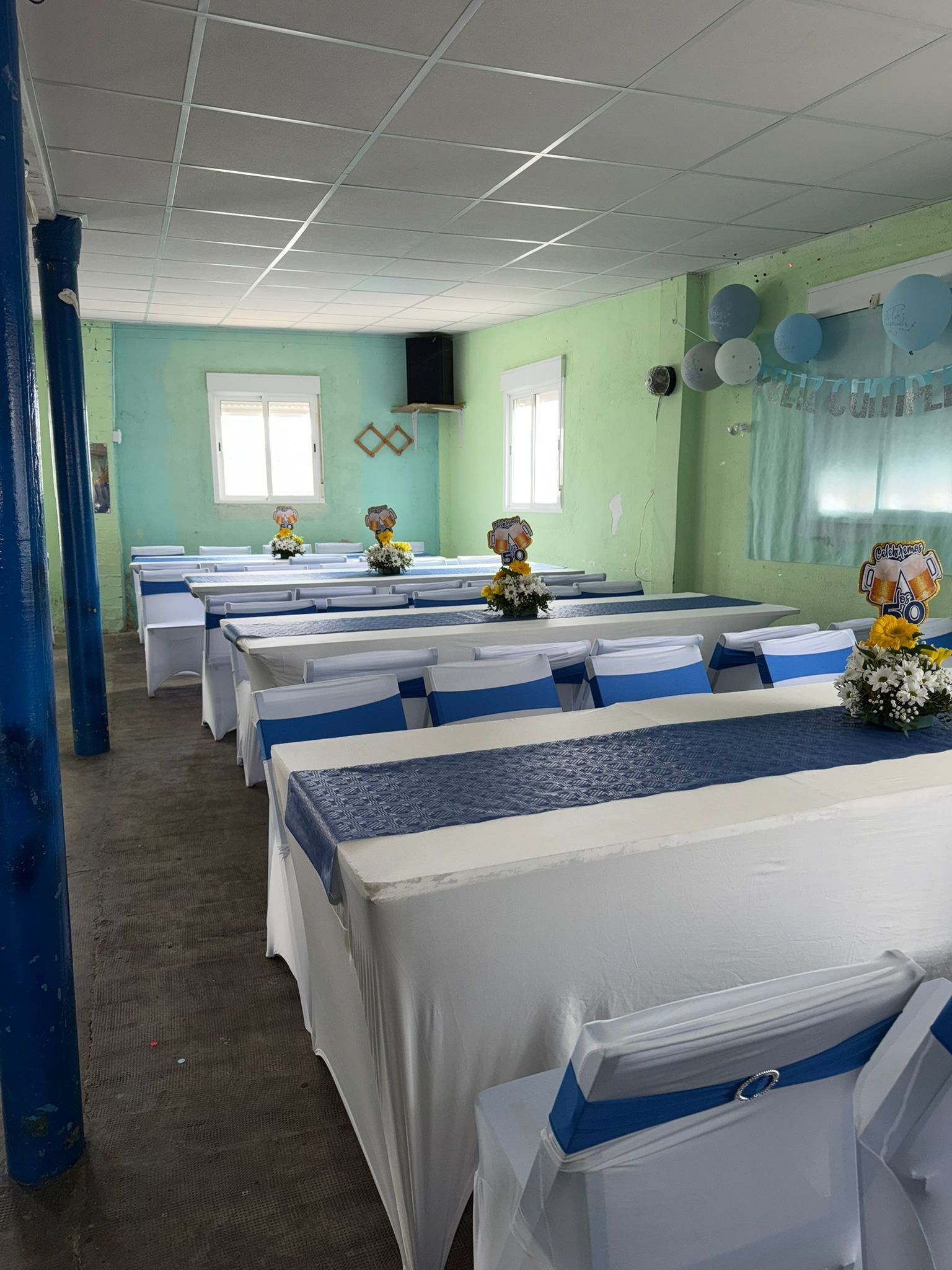 Además, incluimos la decoración de sillas, mesas, entradas y espacios clave, creando una ambientación completa y cuidada.